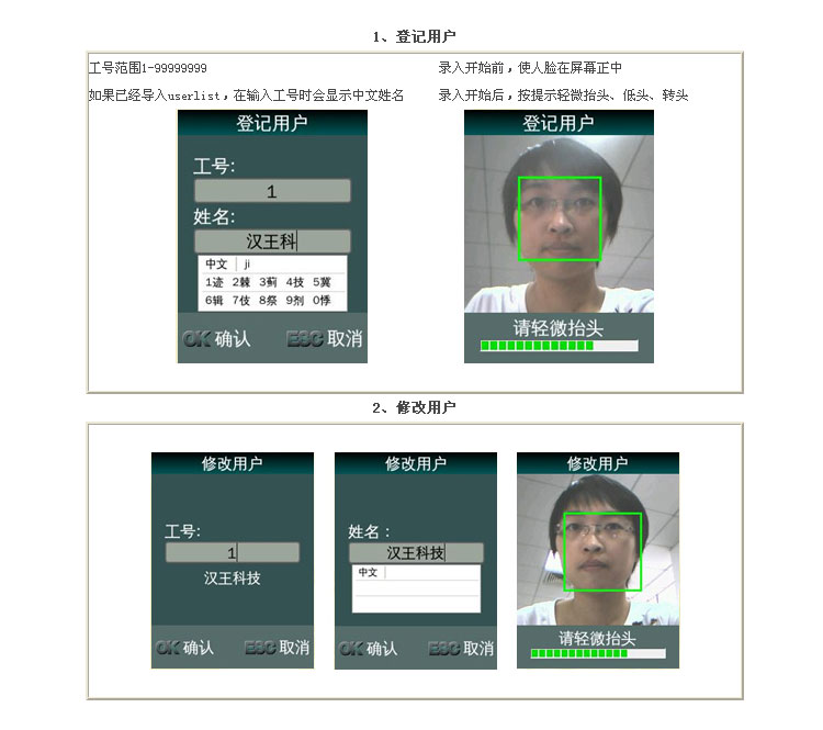 汉王人脸考勤机 人脸识别