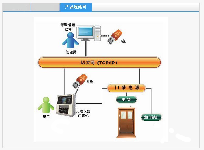 U盘下载:通过U盘上传用户姓名列表,下载门禁考勤记录以及照片